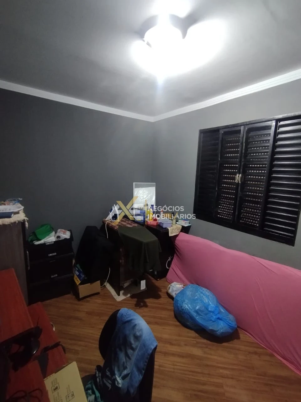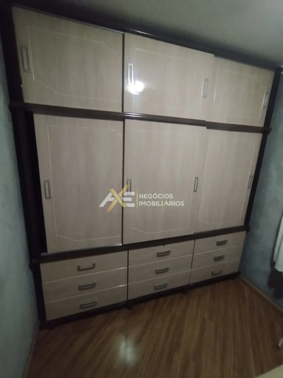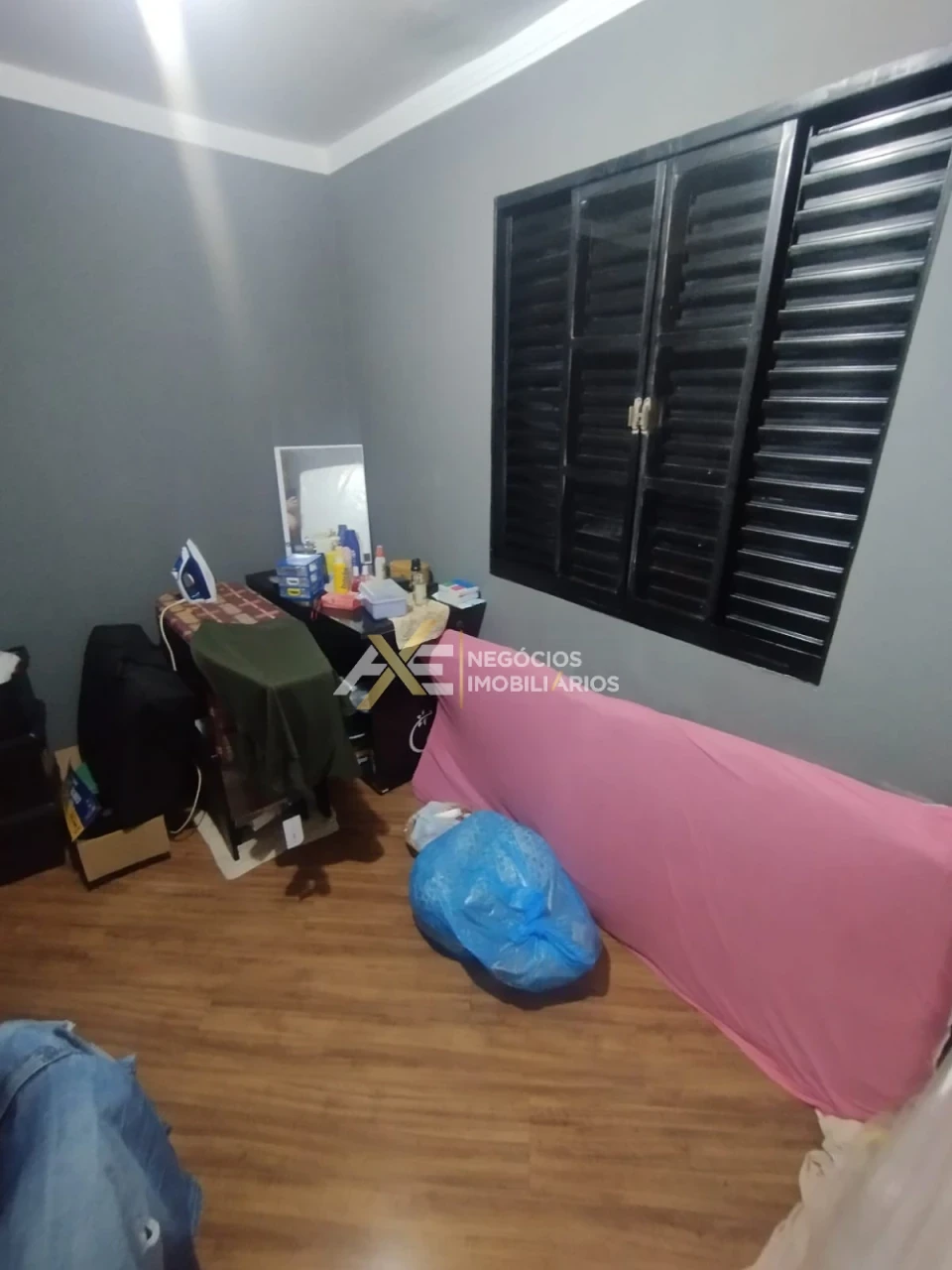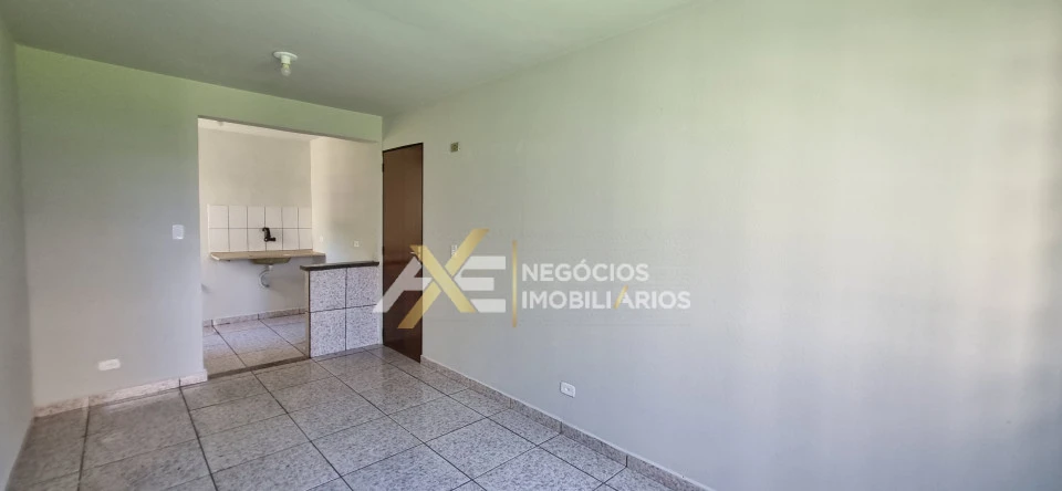 Com 2 quartos, sala, cozinha, banheiro social, garagem;
